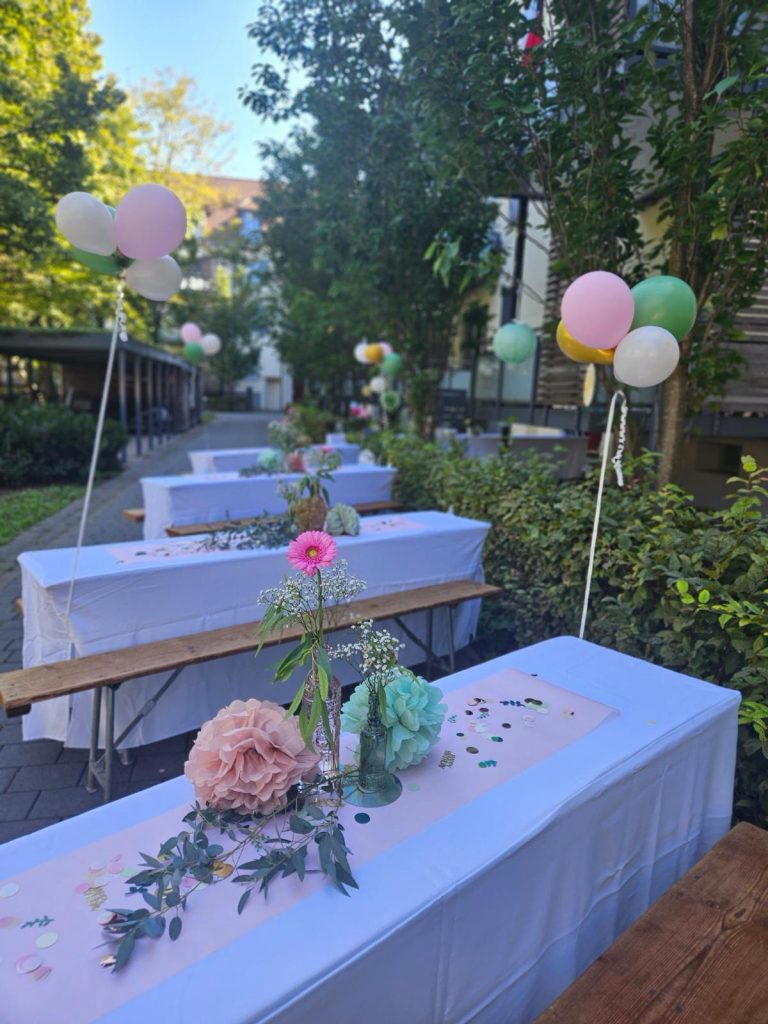 Am 19. September 2025 wurde Melanie 40 Jahre alt. Zu diesem besonderen Anlass kamen viele Bekannte, Freunde und Familienmitglieder um diesen Tag mit Melanie zu feiern. Gefeiert wurde im Hinterhof mit schön geschmückten Tischen, leckerem Essen und super Wetter! Danke, für diesen schönen Tag 🙂